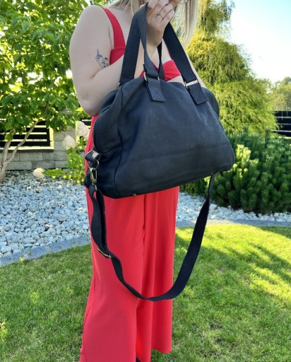 Torba wykonana jest z wysokiej jakości skóry naturalnej, zamykana na zamek błyskawiczny. Doskonale sprawdzi się jako teczka na podróż a także torba na siłownię. Jest bardzo wytrzymała dzięki solidnym, mosiężnym okuciom. Pojemna i bardzo praktyczna.