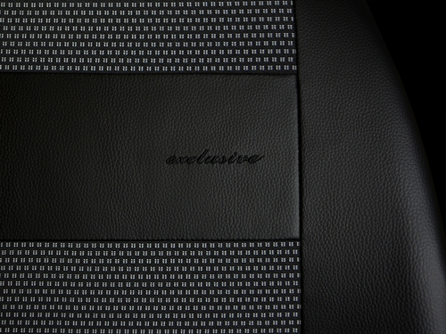 Pokrowce na przednie fotele zdobione są starannie dobranym, delikatnym haftem EXCLUSIVE.