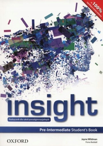 Insight, nowy, 4-częściowy kurs dla szkół średnich, rozwija i inspiruje uczniów. Tematy prowokujące do myślenia i teksty bogate w wiedzę pobudzą do dyskusji i wyrażania własnych opinii oraz zainspirują do krytycznego myślenia o otaczającym świecie.Insight pokazuje uczniom, w jaki sposób rozwijać własne umiejętności, a także uczy samodzielności, niezwykle przydatnej w dalszej nauce. Insight nie tylko uczy słów, ale wyjaśnia, jakim regułom podlegają, dzięki czemu uczniowie używają języka obcego z dużo większą pewnościąi kompetencją. Najważniejsze cechy kursu:Tematyka pobudzająca do myślenia oraz teksty bogate w informacje stanowią wyzwanie dla uczniów, dostarczają wiedzy o świecie i prowokują do dyskusji. Bogactwo systematycznie wprowadzanego słownictwa, sekcje Vocabulary insight oraz 10-stronicowy bank słownictwa nie mają sobie równych wśród innych podręczników.Dzięki sekcjom kulturowym w każdym rozdziale oraz powiązanym z nimi filmami na DVD uczniowie poznają i lepiej zrozumieją obyczaje, tradycje i historię krajów anglojęzycznych.Dodatkowe lekcje oparte na literaturze, znajdujące się w zeszytach ćwiczeń, pozwalają w szczególny sposób wzbogacić lekcje. Tematyka podręczników omawia wszystkie tematy z katalogu tematów maturalnych, a zadania typu maturalnego są regularnie wprowadzane zarówno w podręczniku, jak i w zeszycie ćwiczeń.