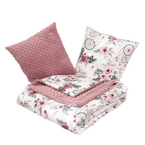 Dodatkowo 2 poduszki 40x40cm, (minky+bawełna) z wkładem z kulek sylikonowych antyalergicznych.