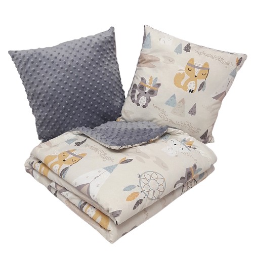 Dodatkowo 2 poduszki 40x40cm, (bawełna) z wkładem z kulek sylikonowych antyalergicznych oraz dwie poszewki 40x40cm na zamek w kolorze narzuty (minky plus bawełna).
