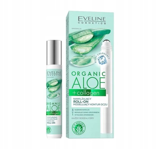 Eveline Organic Aloe + Collagen nawilżający roll-on modelujący kontur oczu 15ml