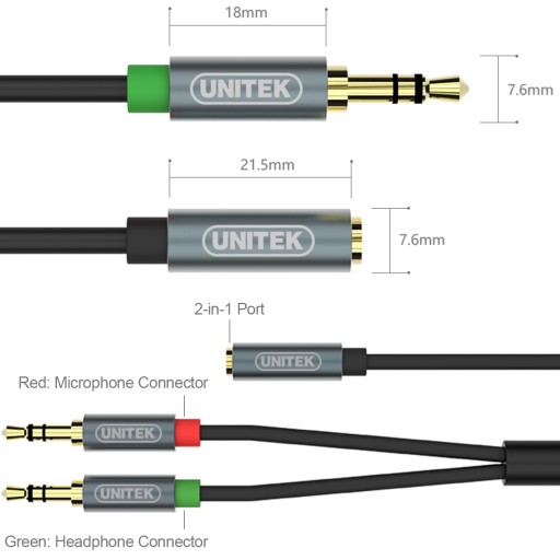 służy do podłączania zestawu słuchawkowego do komputera lub innego odbiornika. Osobno podłącza się go do wyjścia słuchawkowego i do wejścia mikrofonu. Adapter rozdziela sygnał słuchawek i mikrofonu. Aluminiowe wtyki, pozłacane końcówki oraz wysoka jakość użytych materiałów sprawiają, że przewód nie tylko odtwarza dźwięk wysokiej jakości ale także, że będzie nam służył przez długi czas.