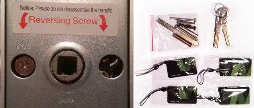 Zmiana kierunku klamki prawa/lewa polega na odkręceniu wkręta z jednej strony, przekręceniu klamki i wkręceniu wkręta z drugiej strony (trójkątny znaczek na obudowie pręta zawsze skierowany w dół).