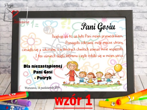 Ta aukcja dotyczy zakupu jednej personalizowanej ramki dla nauczyciela na dowolną uroczystość.