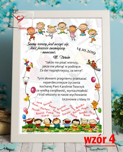 Grafika posiada miejsce na imiona całej klasy czy grupy.