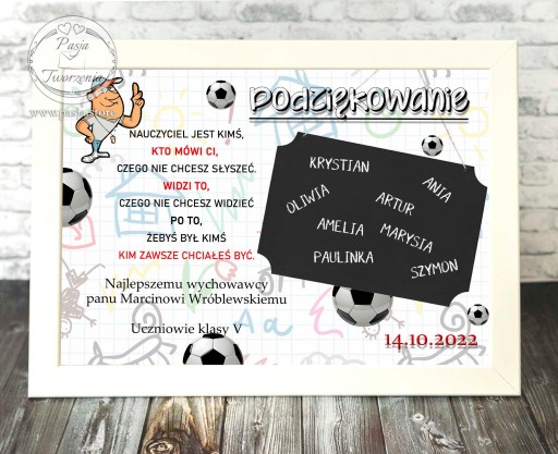 Ta aukcja dotyczy zakupu jednej personalizowanej ramki dla nauczyciela na dowolną uroczystość.
