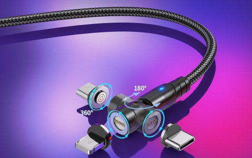 ПОВОРОТНЫЙ МАГНИТНЫЙ КАБЕЛЬ 2М БЫСТРАЯ ЗАРЯДКА 3А USB C PD CUB 60ВТ