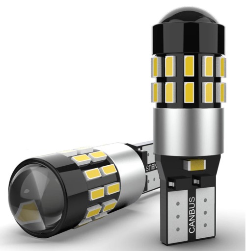 - ZESTAW 2 szt. ultra mocnych zamienników LED żarówek samochodowych W5W T10-3014-CAN z soczewką LED