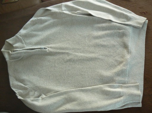Zimowy sweter z golfem, zasuwany od góry na zamek.