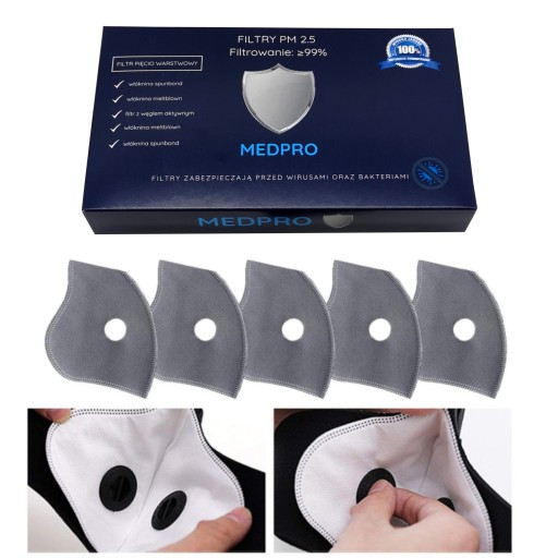 Filtry chronią przed dymem (pyły PM10 i PM2,5), pyłkami traw i większością wirusów w tym koronawirusem