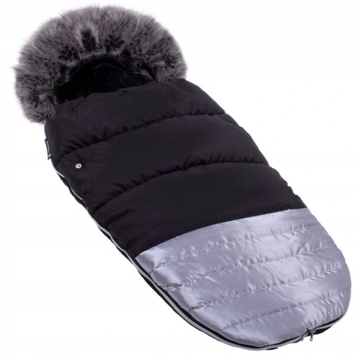 Wyjątkowy design dopełnia wykończony sztucznym futerkiem kaptur śpiworka, oraz dodatek srebrnej eleganckiej tkaniny. Futerko można odpiąć.