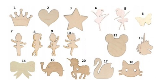 Dekor na drugim froncie kołyski do wyboru -> kokarda, serce, motylek, korona, gwiazdka, baletnica, kucyk pony, myszka mickey - wzory poniżej