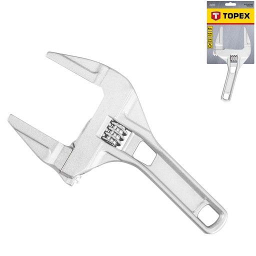 Klucz nastawny TOPEX (nr ref. 35D559 )o długości 200 mm i zakresie 0-70 mm jest wykonany z aluminium. Wyróżnia się wydłużonymi, profilowanymi szczękami o bardzo szerokim zakresie regulacji oraz niewielką grubością głowicy klucza która ułatwia pracę w trudno dostępnych miejscach. Skrócona rękojeść, przy zachowaniu szerokiego zakresu rozstawu szczęk, umożliwia operowanie kluczem w miejscach o ograniczonej przestrzeni. Marka TOPEX skierowana jest do majsterkowiczów.