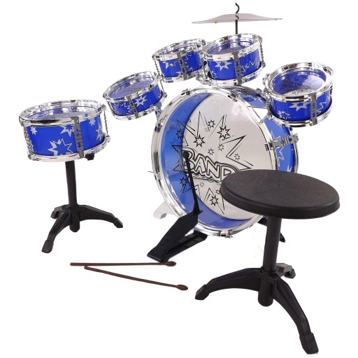PERKUSJA 6 BĘBNÓW TALERZ STOŁEK-Niebieska 28875A N