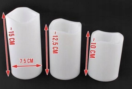 Świece LED działają na baterie AAA (3 na świecę) - brak w zestawi