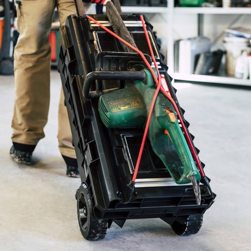 Mobilna skrzynia narzędziowa pozwala na przewożenie długich elektronarzędzi jak np. młoty udarowe, szlifierki kątowe lub mieszadła do cementu wraz z niezbędnymi akcesoriami. Jej ponadstandardowe wymiary czynią ją wyjątkowym produktem w swojej kategorii.