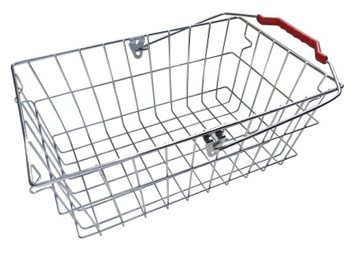 KOSZYK Z DRUTU OCYNKOWANY DO SKLEPU / ROWERU Z JEDNĄ CZERWONĄ PLASTIKOWĄ RĄCZKĄ