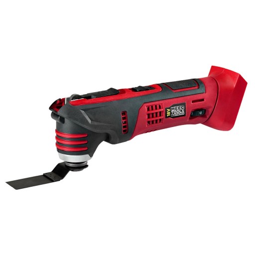 Zasilana akumulatorowo wyrzynarka z szybkozłączką i dwoma ostrzami. Trzystopniowa oscylacja, która zapewnia szybkie cięcie, oraz odchylana stopa aluminiowa umożliwiająca cięcie ukośne (0/15/30/45°).