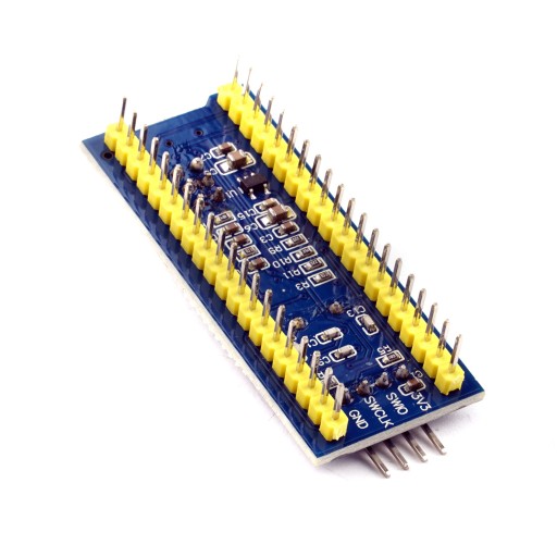Moduł z 32 bitowym mikrokontrolerem STM32F103C8T6 posiadający rdzeń ARM Cortex M3 taktowany 72 MHz oraz 64 kB pamięci Flash i 20 kB SRAM. Układ dużo szybszy niż klasyczne arduino ale posiadający gniazdo micro USB pozwalające programować go poprzez wiele darmowych środowisk w tym Arduino IDE. Po przeciwnej stronie znajdziemy wyprowadzenia do podłączenia programatora i debuggera SWD.