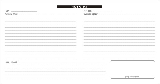 Oferuje wykonanie Książeczki Przeglądów i Napraw Samochodu.