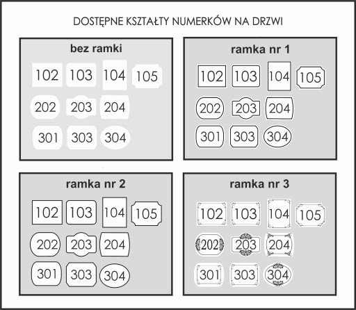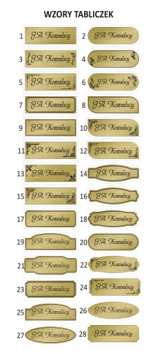 - wybrany kształt tabliczki i numerka (wzorniki poniżej)