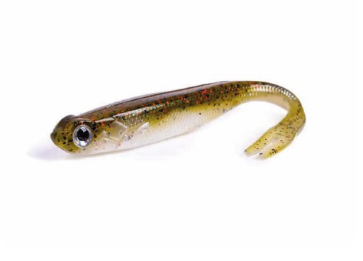 Miękka przynęta wędkarska wykonana z doskonałego tworzywa sztucznego. Dzięki specjalnym nacięciom na ogonku bardzo aktywnie pracuje prowokując ryby zarówno przy klasycznym prowadzeniu, jak i biernym opadaniu na dno.
