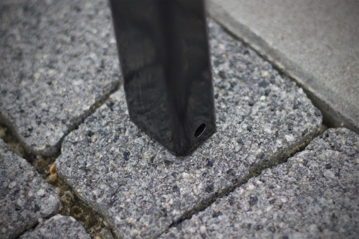 UWAGA: W dolnej części profili pionowych wykonane zostały otwory, w które może zostać włożony pręt zabezpieczający przed wyrwaniem ławki z podłoża. Pręt (lub śruba) nie jest w zestawie z ławką.
