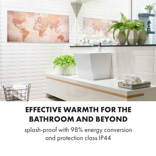 - Efektywne ciepło nie tylko w łazience: wodoodporna technologia z 98% konwersją energii i klasą ochrony IP44