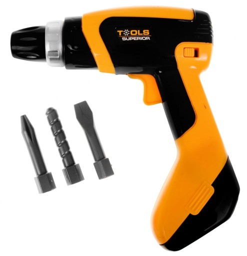 Wkrętarka na baterie wraz z zestawem 3 wymiennych końcówek to wspaniała gratka dla małych majsterkowiczów. Możemy używać ją do wkręcania i wykręcania śrubek oraz wiercenia.