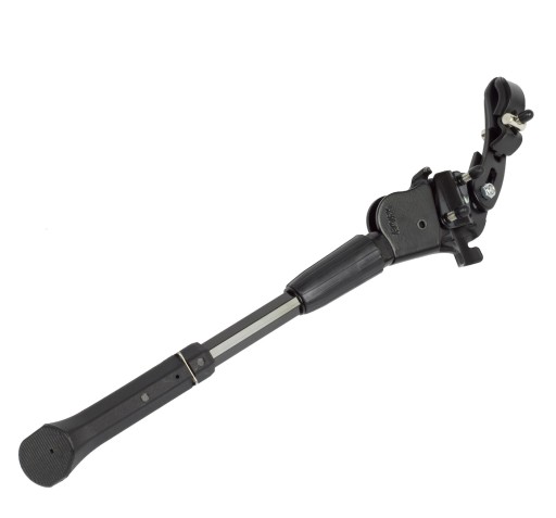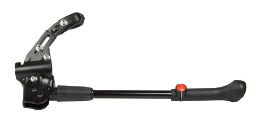 - Regulowana stopka aluminiowa mocowana na skośnym i poziomym ramieniu tylnego widelca, do rowerów na kołach 26-29" (zakres długości 32 - 38 cm).