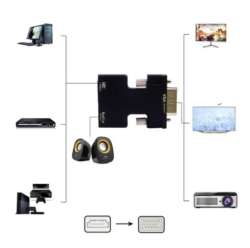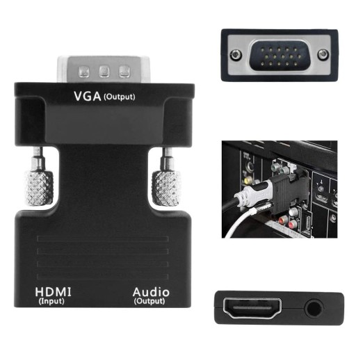 KONWERTER ADAPTER Z VGA D-SUB NA HDMI + AUDIO