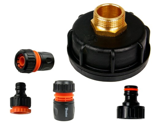 💦 Zestaw umożliwia podłączanie węża ogrodowego 1/2'' lub 3/4'' ze zbiornikiem IBC mauser.
