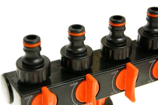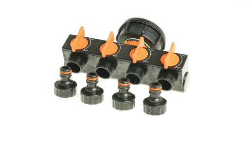 - Czwórnik z przyłączami do węża ogrodowego o średnicy 3/4" lub 1/2"- 1 szt