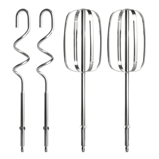 W ZESTAWIE ZNAJDUJĄ SIĘ 2 RODZAJE MIESZADEŁ, DO UBIJANIA BIAŁEK, LEKKIEGO CIASTA ITP. ORAZ DO WYRABIANIA CIĘŻSZEGO CIASTA I BARDZIEJ GĘSTEJ ZAWARTOŚCI