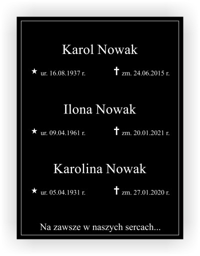 Grawerowana tablica nagrobna 40x30cm - orientacja pionowa - indywidualna personalizacja.