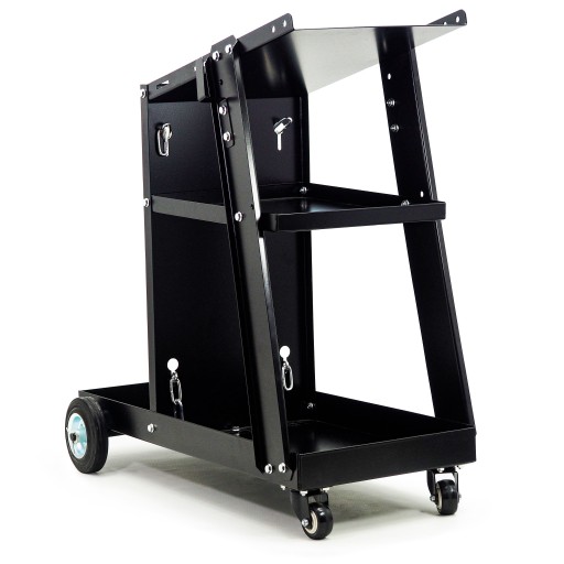 Oferowany wózek transportowy na sprzęt spawalniczy, wyposażony jest w 3 pojemne półki oraz miejsce montażowe na butlę z gazem osłonowym. Solidna metalowa konstrukcja, wykonany z wysokiej jakości stali wytrzyma obciążenie nawet do 40 kg. Umiejscowiona pod kątem górna półka, na której można umieścić spawarkę, pozwoli na lepszą kontrolę, a dwie pozostałe zapewnią miejsce na potrzebny osprzęt.