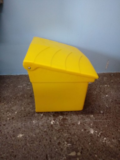 Pojemnik wykonany z tworzywa sztucznego PEHD. Odporny na warunki atmosferyczne i środki chemiczne w tym kwasy, zasady. Może być używany do przechowywania piasku i soli podczas zimy.