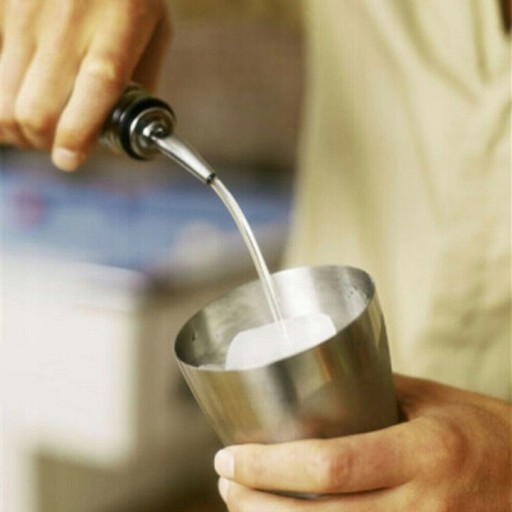 Metalowy nalewak, do łatwego nalewania z butelek bez rozlewania.