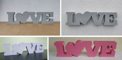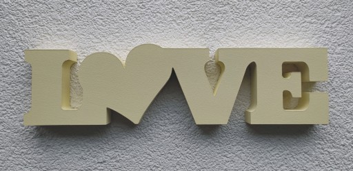 Przedmiotem sprzedaży jest napis dekoracyjny LOVE z sercem o wymiarze 10x37cm.
