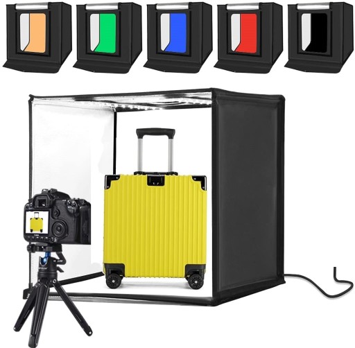 Kompaktowy, gotowy do natychmiastowego stosowania, w pełni kompletny zestaw do wykonywania zdjęć bezcieniowych, produktowych