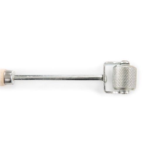 Kupując, jedną sztukę otrzymasz — metalowo — drewnianą rolkę dociskową o wymiarach: długość 30 cm, szerokość beczułki 3 cm.