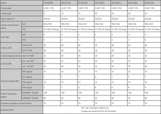 Multiswitch do użytku wewnętrzengo, przeznaczony do budowy instalacji antenowej systemu telewizji satelitarnej i naziemnej.
