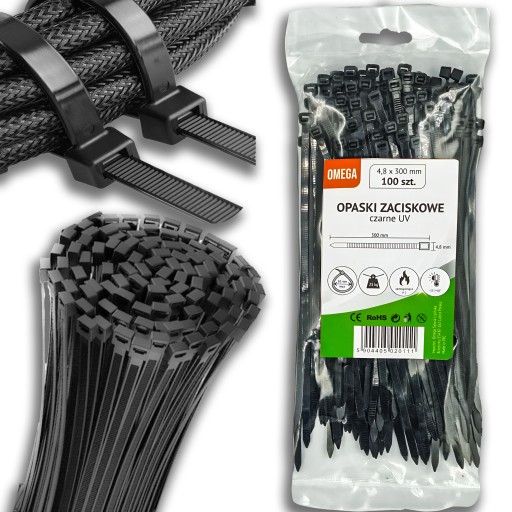 OPASKI TRYTKI ZACISKOWE KABLOWE UV CZARNE 4,8X300