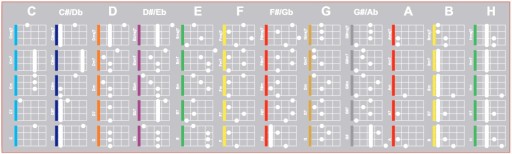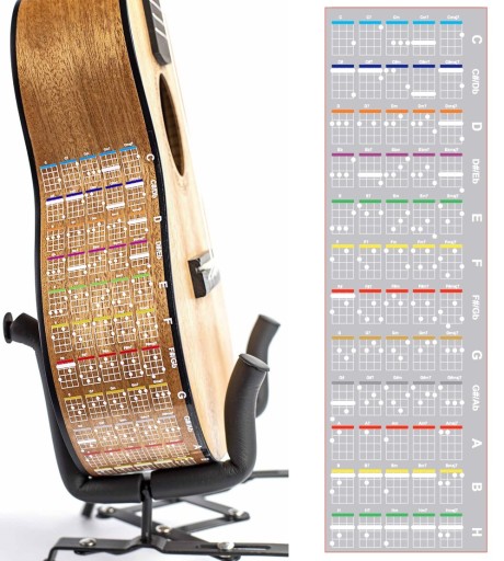 Naklejka z akordami na ukulele - sopranowe , koncertowe , tenorowe , barytonowe.