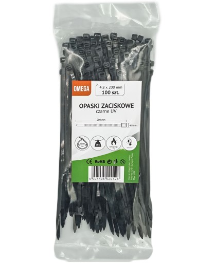 OPASKI TRYTKI ZACISKOWE KABLOWE UV CZARNE 4,8X200
