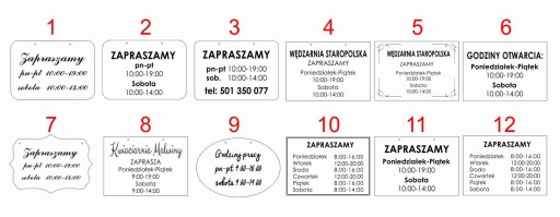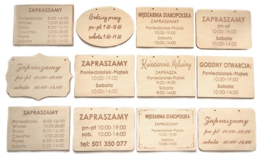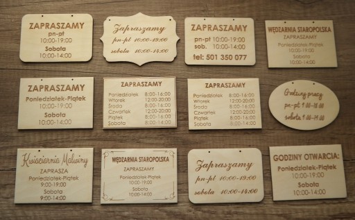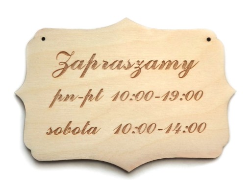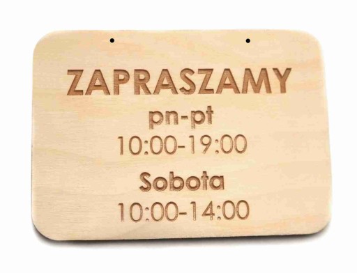 - GRAWER DWUSTRONNY: z jednej strony godziny otwarcia z drugiej strony grawerujemy domyślnie napis ZARAZ WRACAM, możliwy jest grawer innego napisu (wtedy prosimy o informację w wiadomosci do sprzedawcy)