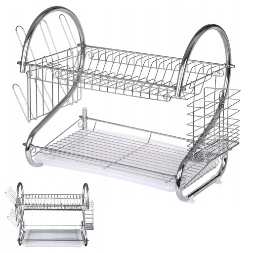 ✅ Dwupoziomowa, metalowa (chromowana) suszarka do naczyń.