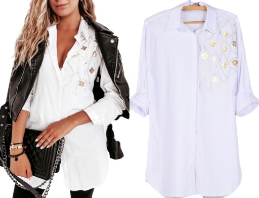 Bardzo modna klasyczna koszula ze złotą aplikacją