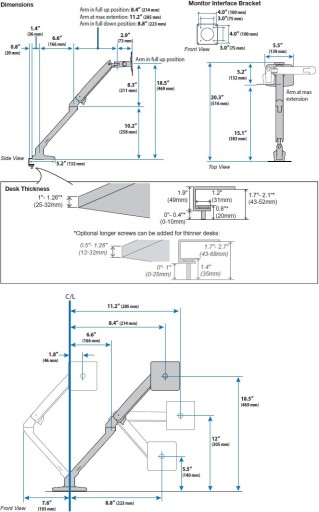 Uchwyt Under Mount C-Clamp zapewnia estetyczny wygląd biurka z tyłu i wymaga niewiele miejsca do zamocowania pod krawędzią biurka, dzięki czemu nie przeszkadza w zarządzaniu kablami. Oszczędza cenne miejsce na biurku dzięki nowoczesnemu systemowi zarządzania kablami. Umożliwia łatwą regulację wyświetlacza za pomocą lekkiego dotyku dzięki opatentowanej technologii Constant Force ™. Uchwyt Obsługuje monitory o wadze od 3,2 do 9,1kg. Monitor można wysunąć do 22,2" (56 cm). Idealnie nadaje się do centrów telefonicznych i biurek ustawionych tyłem do siebie. Przeszedł pomyślnie test ruchu Ergotron trwający 10 000 cykli, co zapewnia lata bezproblemowej pracy.